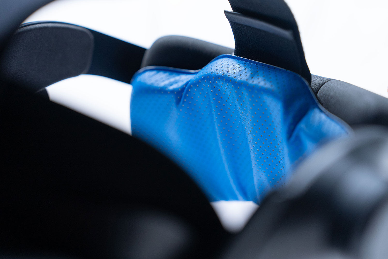 • Blue PU leather pads by Studioform Creative.