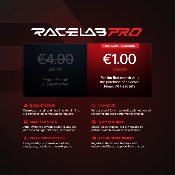 Pimax Partner Offer: three months of RaceLab Pro Membership for just €1/month